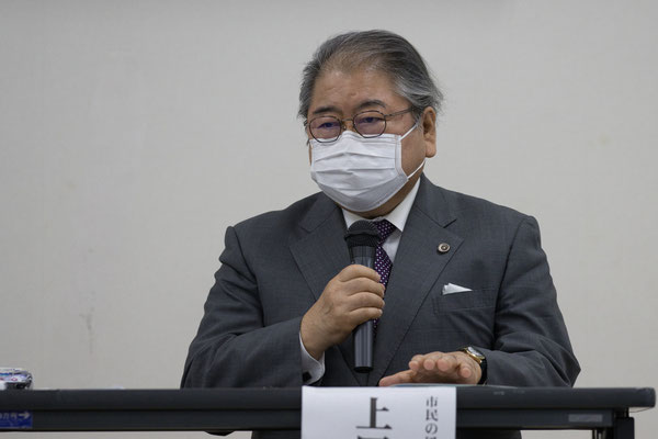 「市民の風」は、混迷する現在の政治状況を前に試行錯誤が続いていますが、上田さんと共有した多くの時間を無駄にすることなく、上田さんが願った、平和な世界、誰もが人権を尊重されイキイキと暮らす社会、弱い立場の人々に寄り添った政治、、、に少しでも近づけるように奮闘する決意です。お別れは本当に残念ですが、少しゆっくりお休みしていただいてから、天国から私たちを見守り叱咤激励してくださることをお願いしてお礼のことばといたします。