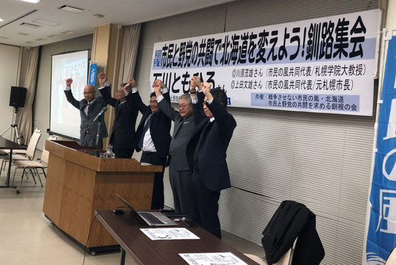 2019/3/1に道知事選挙に立候補された石川知裕さんを支援する釧路集会に上田文雄さんに参加いだきました。