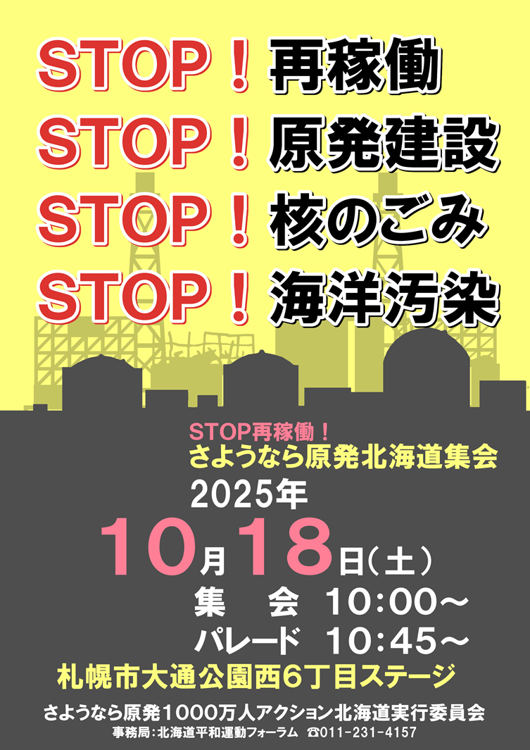 ※毎月3日(13時~手稲駅自由通路)と19日(手稲駅北口)、24日(13時~手稲駅自由通路)の3回、手稲区の市民団体や有志の呼びかけの行動をしています。